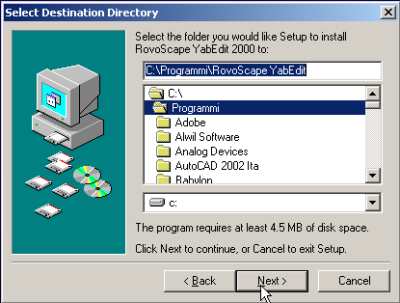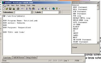 Ora, bisogna dire a YABEDIT dove si trova l'interprete YABASIC per utilizzarlo correttamente. Nella barra del menu Avvio, o Start dovrebbe apparire il collegamento "Rovoscape Yabedit 2000" (v. figura 7). Fate un click, e dovrebbe apparire la schermata principale dell'Editor (v. figura 8).
