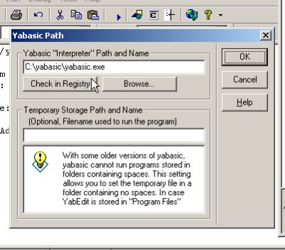 Dal menu Run selezionate l'opzione Yabasic Path (v. figura 9), e apparirà l'omonimo riquadro. Nel primo campo inserite il seguente percorso: "C:\yabasic\yabasic.exe" (v. figura 10), e il gioco è fatto.